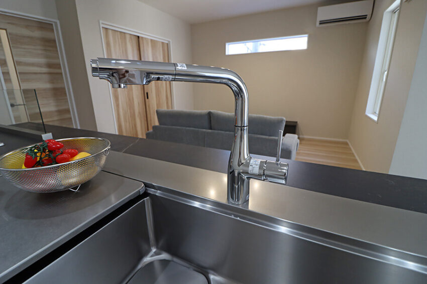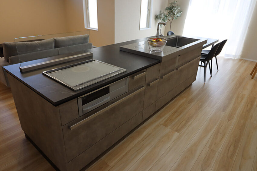 アイランド型の高級キッチン〈セントロ〉が主役。L字型に広がるLDKと高品質なキッチンで、毎日の暮らしが豊かになります。家事動線と作業スペースも魅力です。