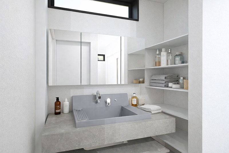 ■玄関直結の洗面動線で、帰宅後の手洗いもスムーズ