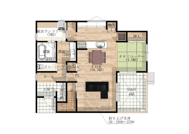 築2年以内の築浅中古戸建。広々帖LDKと回遊動線、充実収納を備えた開放感あふれる住まいです。